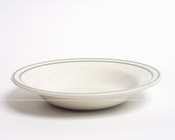 Tuxton Emerald 12 Oz Eggshell Rim Soup BowlUse this rim soup bowl from Tuxton to serve your favorite soups or stews It can hold up to 12 ounces and is 8-34 in diameter This bowl is eggshell in color with green speckle and green bands around the edge It is very durable and has a 2 year no chip