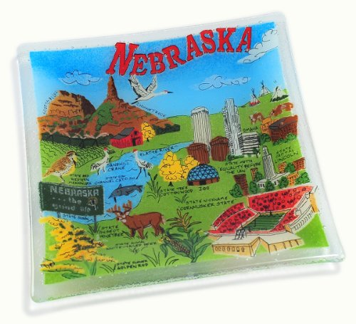 Bring life joy and pride a memory or a dream to your home and tabletop with the Peggy Karr Nebraska State Plate Made of glass this plate has a 10 diameter Full of Peggy Karrs brilliant colors colors are fired at 1600 degrees Fahrenheit between two layers of clear glass Each piece has its ow