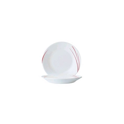Cardinal Arcoroc Toronto Piment Red 15 Oz Soup PlateThis Toronto dinnerware is decorated with red stripes to give your table some zing Its not only durable but food safety compliant so its perfect for nursing homes and hospitalsPattern Toronto Material Opal Color White with red stripes Diam